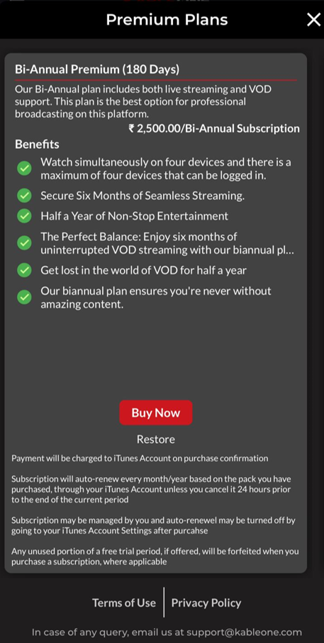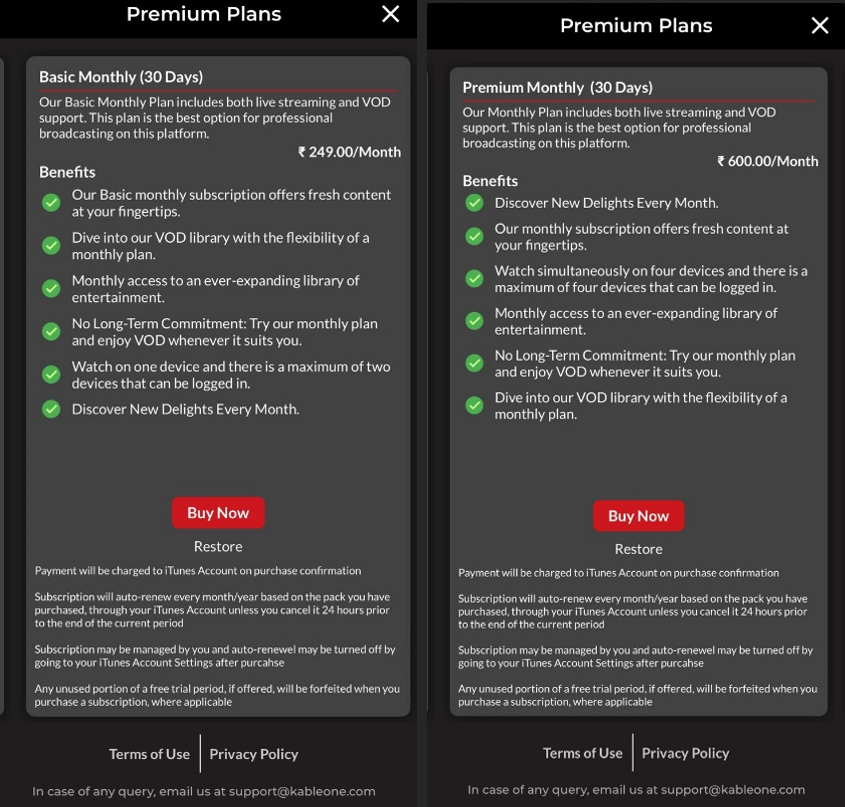 KableOne is a digital video streaming platform offering services like VOD (Video-On-Demand), Linear TV & 24x7 Digital Radio.